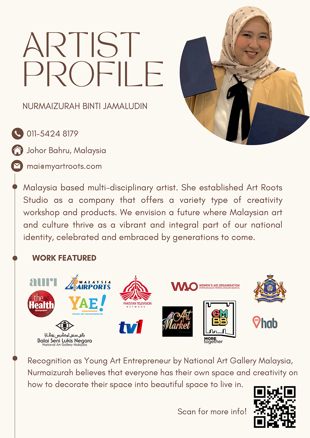 fatin atihrah2025-08-09Trustindex verifies that the original source of the review is Google. Found this gem, when i was strolling around the building! So glad i finally found a place to do artst stuff❤️ the owner also very friendly ~ the price is also affordable , great place for people not familiar with to starts! saskia bruggers2025-08-05Trustindex verifies that the original source of the review is Google. I had such an amazing time at art roots studio. I was allowed to stay a little longer. And the people how work here are so nice absolutely recommended!! Tiqa Aziz2025-08-03Trustindex verifies that the original source of the review is Google. Thank you so much for helping us creating a memorable birthday party for my son! You guys were amazing! All my guests loved the activities done. Especially the kids. They were very happy and proud to bring back their own artwork. Ruth Yap2025-07-31Trustindex verifies that the original source of the review is Google. The workshop was very fun 🥹 there is a decent variety of activities to choose from and the price is not unreasonable at all ( ≧∀≦)ノ their birthday event is very cool too ( ☆∀☆) the staff are very very friendly and patient ☺️🩷 they are all also very talented and the effort they put into their passion is so inspiring 🤩✨️ lovely place to visit when you want a relaxing and fun art session 😌 I would love to come again 🤭 Rachelle Lee2025-07-28Trustindex verifies that the original source of the review is Google. I had an incredible experience at the art studio! The teacher, Mai, is exceptionally friendly and patient. She guided us through the session with such care and support, making the entire experience enjoyable and enriching. I highly recommend this studio, even for beginners. My family and I will definitely be visiting again. Yash Nair2025-07-27Trustindex verifies that the original source of the review is Google. Tried the batik painting with a friend here at this lovely studio. Was a fun session. Mai guided us and was chatting with us at the same time. Will definitely visit again! Laika nisa2025-07-26Trustindex verifies that the original source of the review is Google. boleh bawa kawan & family datang sini! recommended! banyak activity untuk kids & adults😘😚 Hong Eng Lee2025-07-26Trustindex verifies that the original source of the review is Google. Had great time here, ambience is good and instructor is patiently guiding us step by step:) Wafa Nasuha2025-07-25Trustindex verifies that the original source of the review is Google. Our instructor, Mai, was absolutely fantastic. She'e not only a talented artist but also a incredibly patient and encouraging teacher ! The studio itself is clean, well-organized, and had all the materials readily available for our class. Will come again with my friends ! Ilmi Khalis Sofiah2025-07-23Trustindex verifies that the original source of the review is Google. Should bring your friends and family. Very cozy place and fun to learn art! You can do Batik, clay art, texture art and many more!